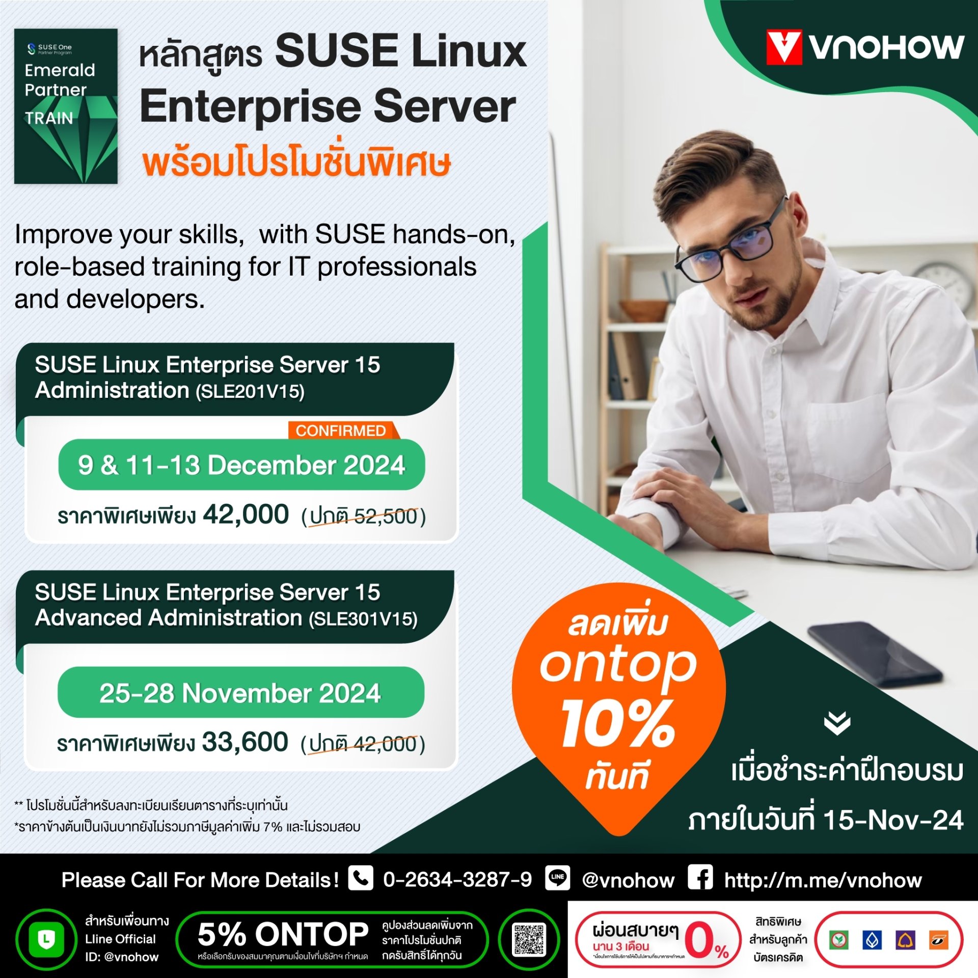 ต้องห้ามพลาด! หลักสูตร SUSE Linux Admin โปรโมชั่นราคาพิเศษ พร้อมส่วนลดเพิ่ม On-Top สูงสุด10%