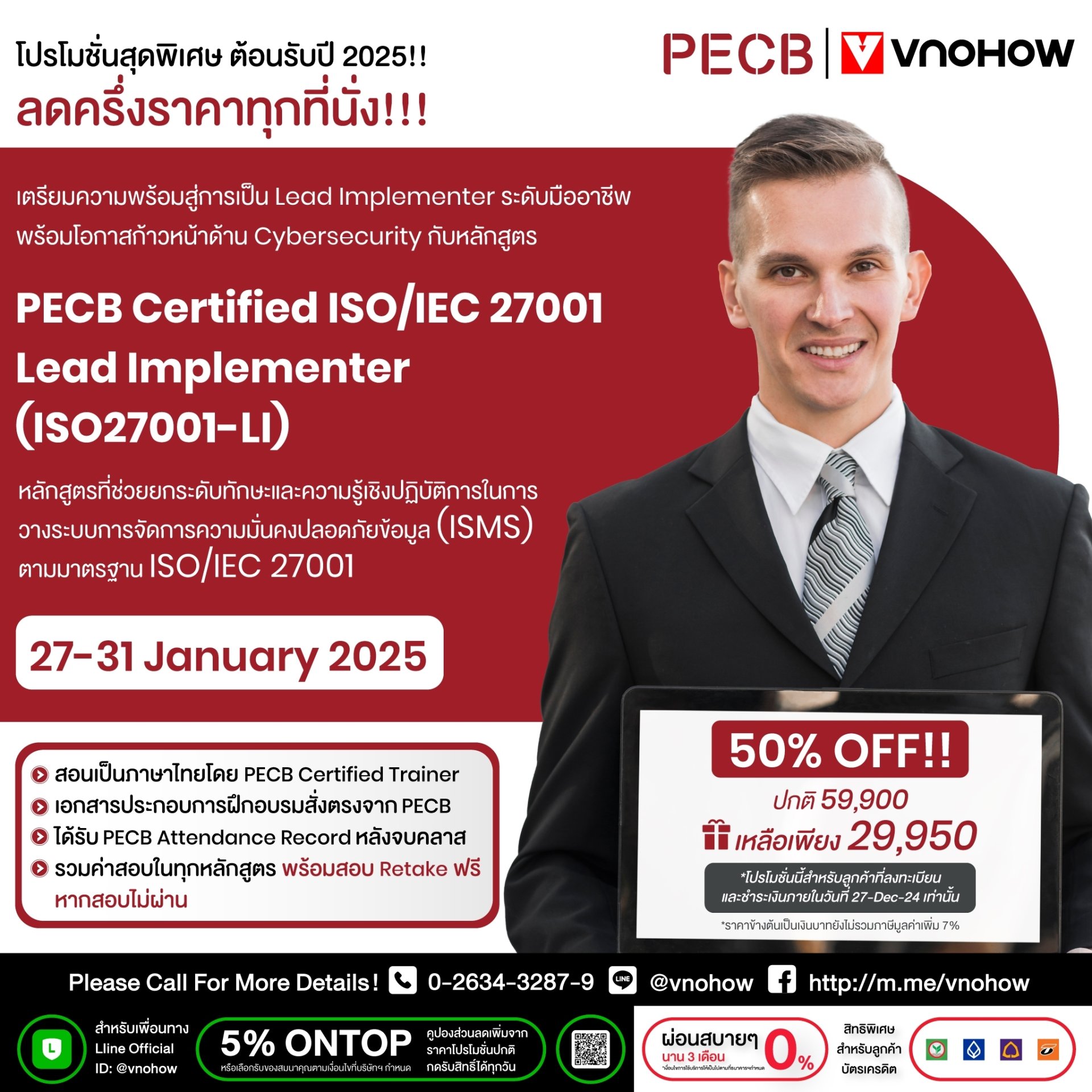 สำหรับหลักสูตร PECB Certified ISO 27001 Lead Implementer ตารางเรียน 27-31 Jan 25 นี้เท่านั้น!!