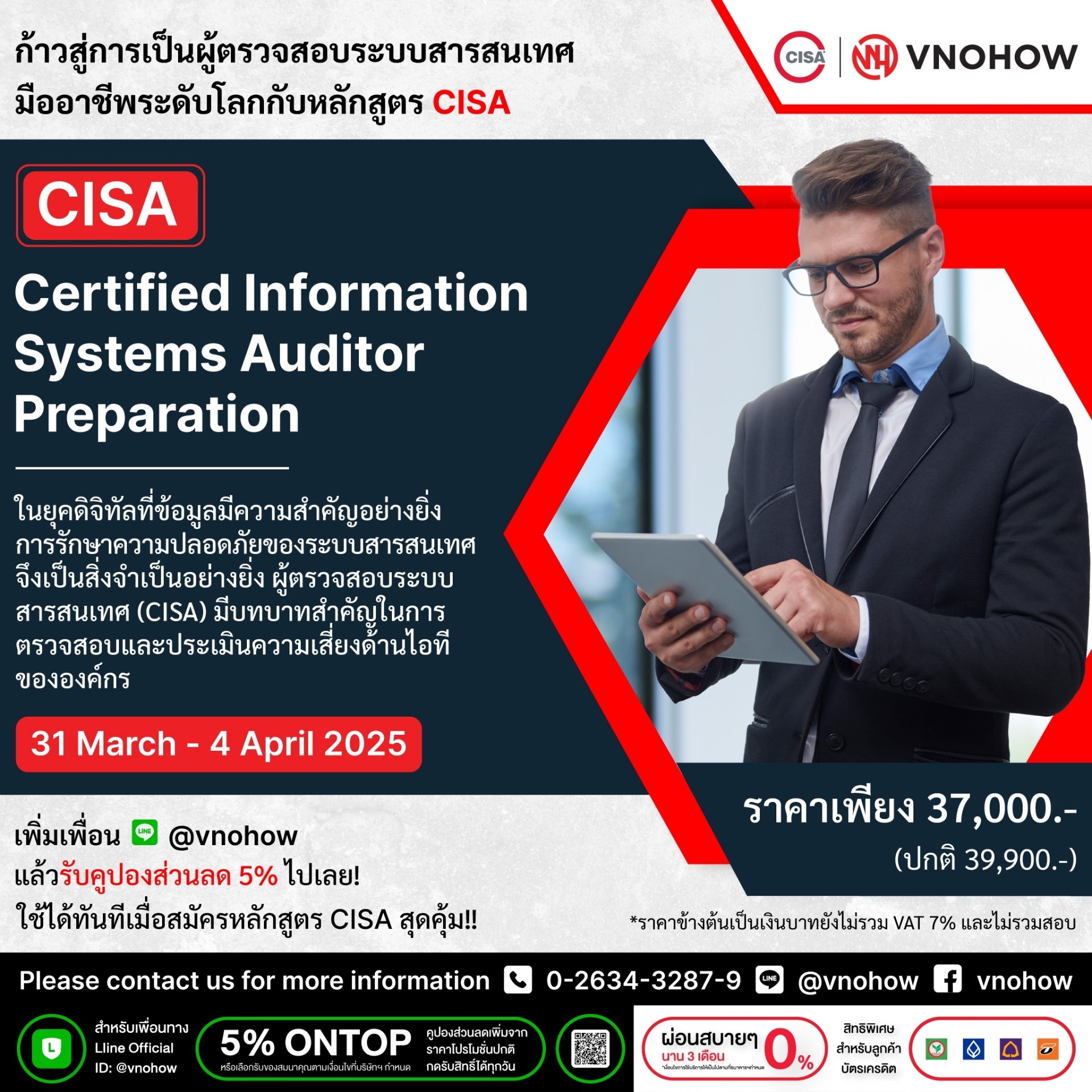 เป็นมืออาชีพด้านการตรวจสอบระบบสารสนเทศกับหลักสูตร CISA (31 Mar'25 - 4 Apr'25) ที่วีโนฮาว