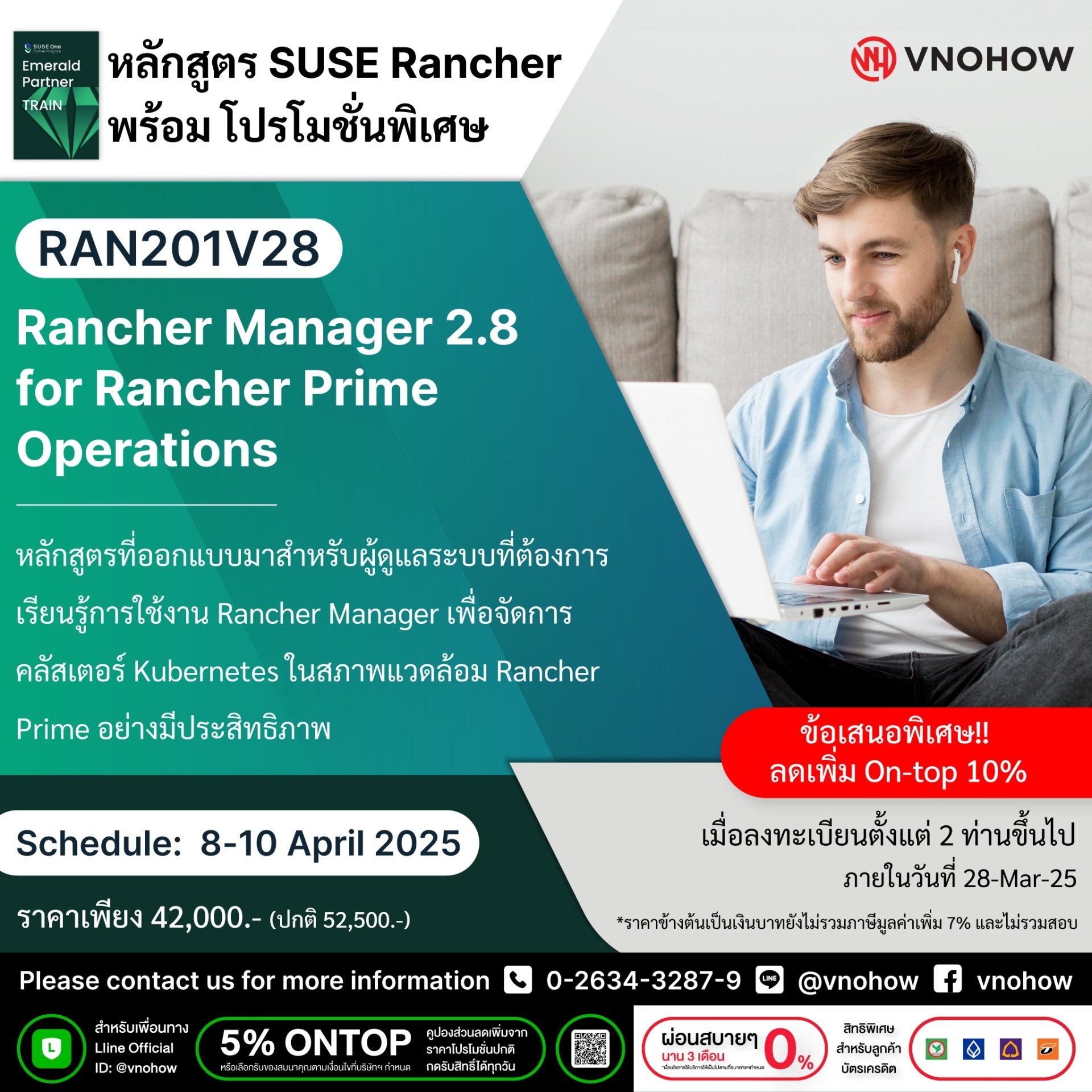 รับส่วนลดเพิ่ม On-top 10% เมื่อลงทะเบียนเรียน หลักสูตร SUSE Rancher Manager เพื่อจัดการคลัสเตอร์ Kubernetes อย่างมีประสิทธิภาพพิเศษ!