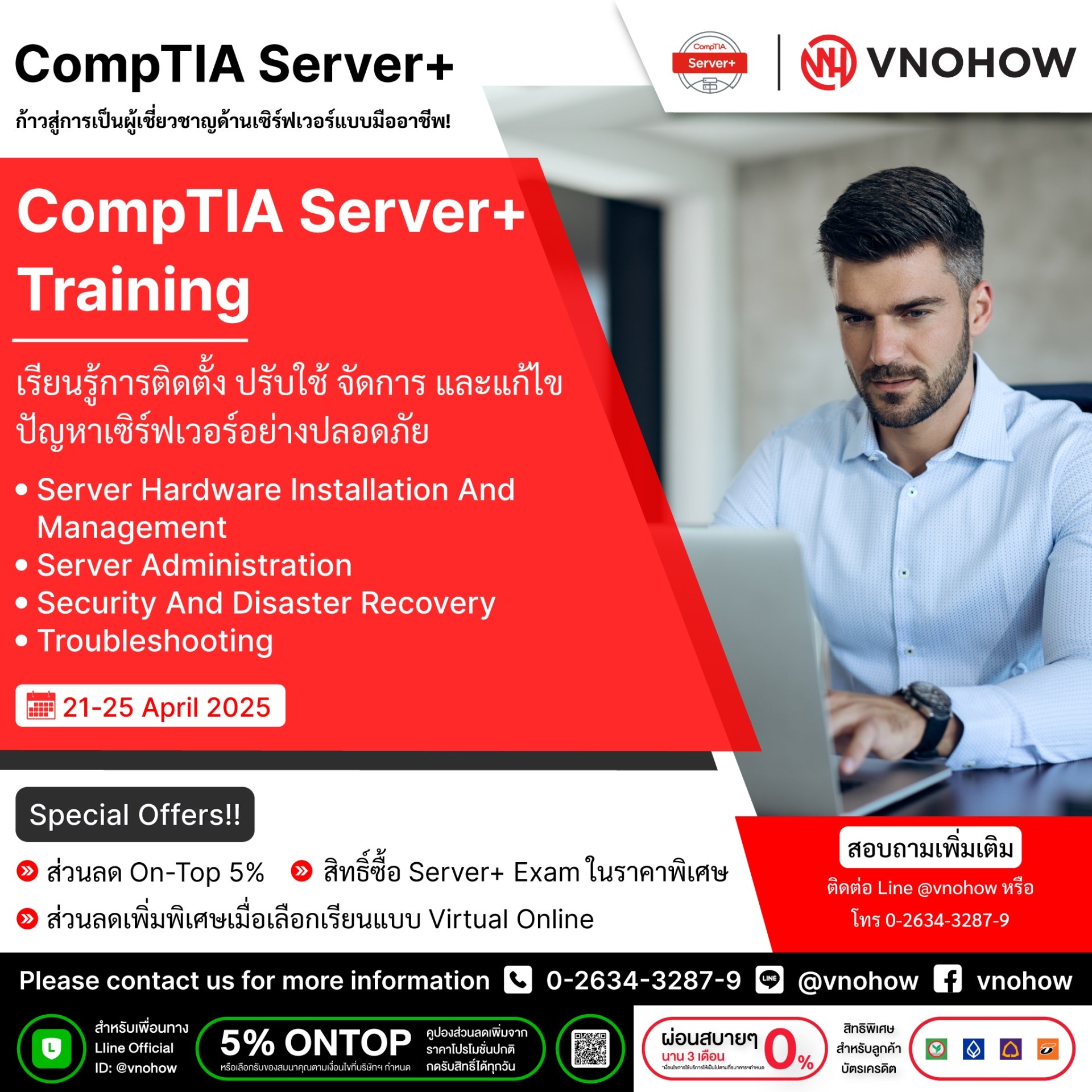 ก้าวสู่โลกของผู้เชี่ยวชาญด้านเซิร์ฟเวอร์อย่างมืออาชีพ! กับหลักสูตร CompTIA Sever+ พร้อมส่วนลด On-top 5% และสิทธิ์ซื้อสอบในราคาพิเศษ!