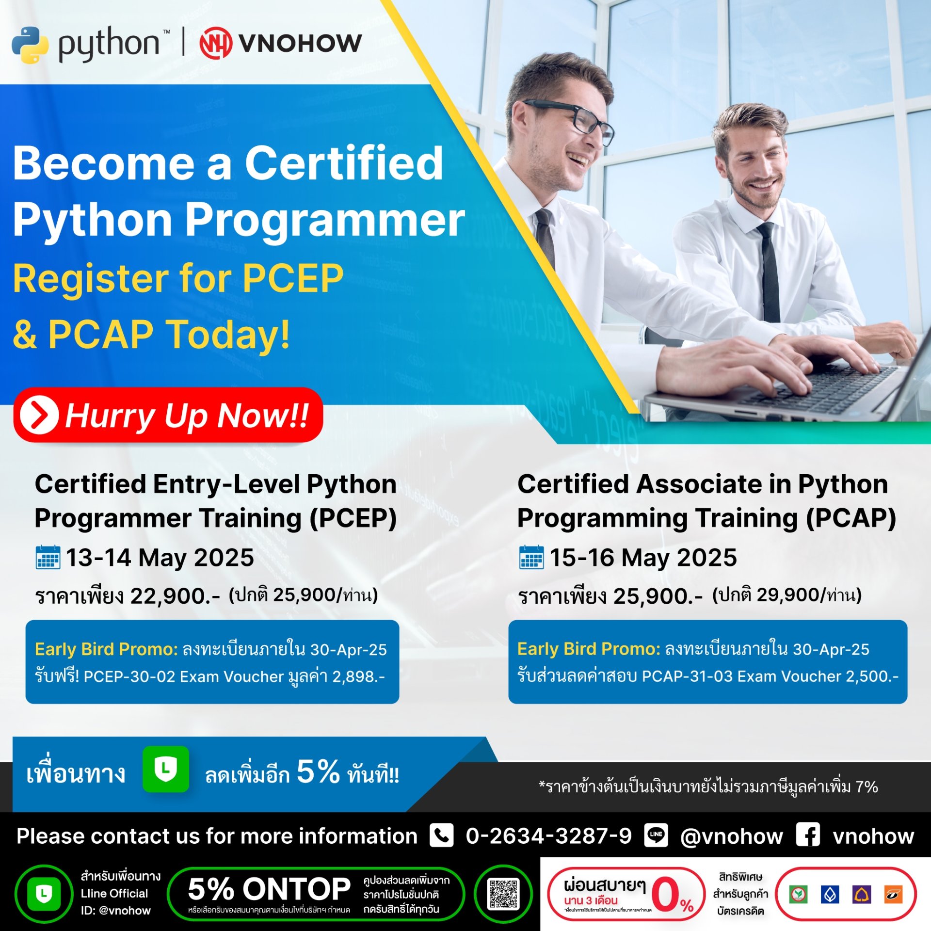 อย่าพลาดโอกาสในการเป็น Certified Python Programmer! หลักสูตร PCEP แถมฟรี! Exam Voucher และ PCAP รับส่วนลดค่าสอบแบบจัดเต็ม!