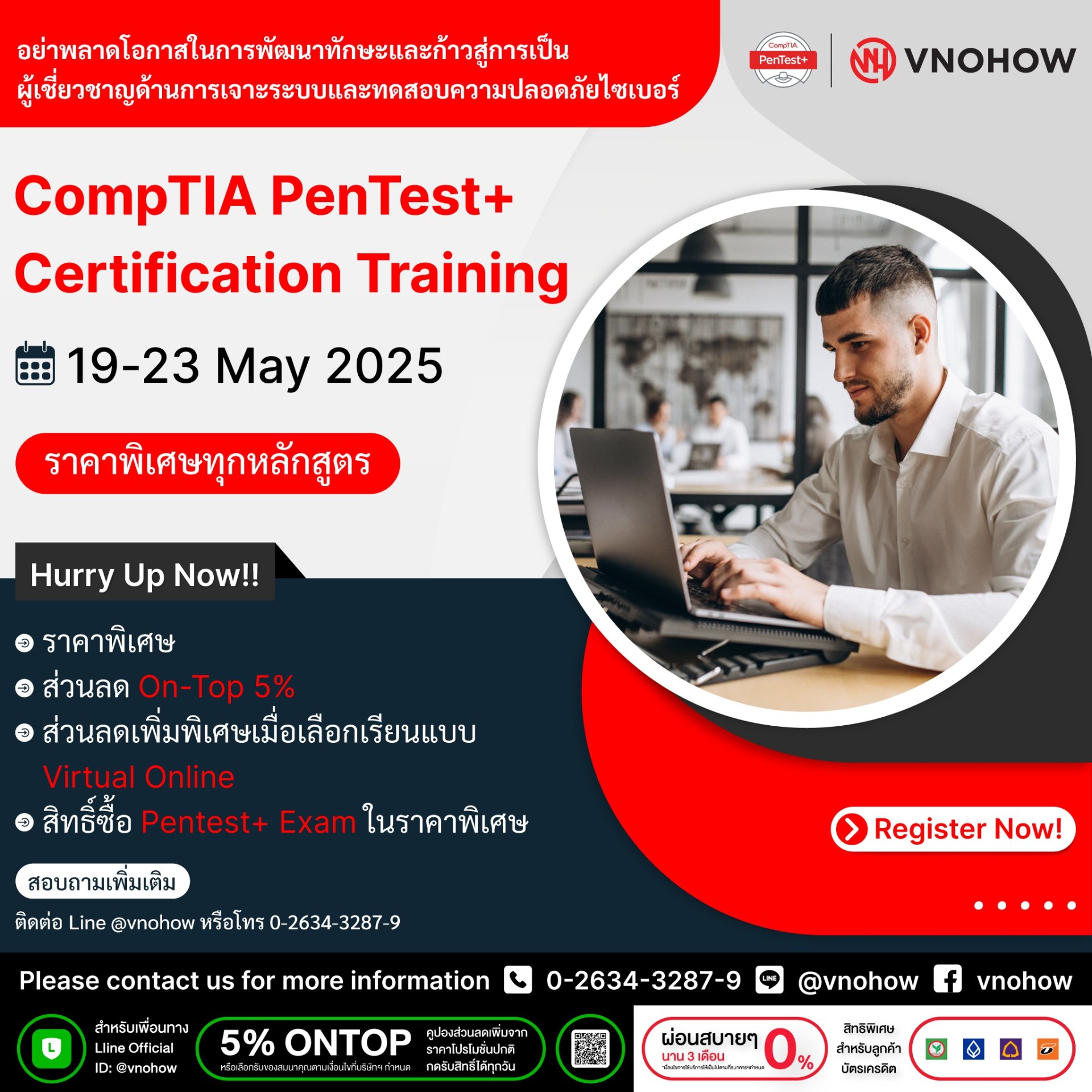 | For registrations or further inquiries, please feel free to contact us Phone: +662 634-3287-89, +662 634-3299 Email: vnohow@vnohow.com LINE: @vnohow Facebook: Vnohow |