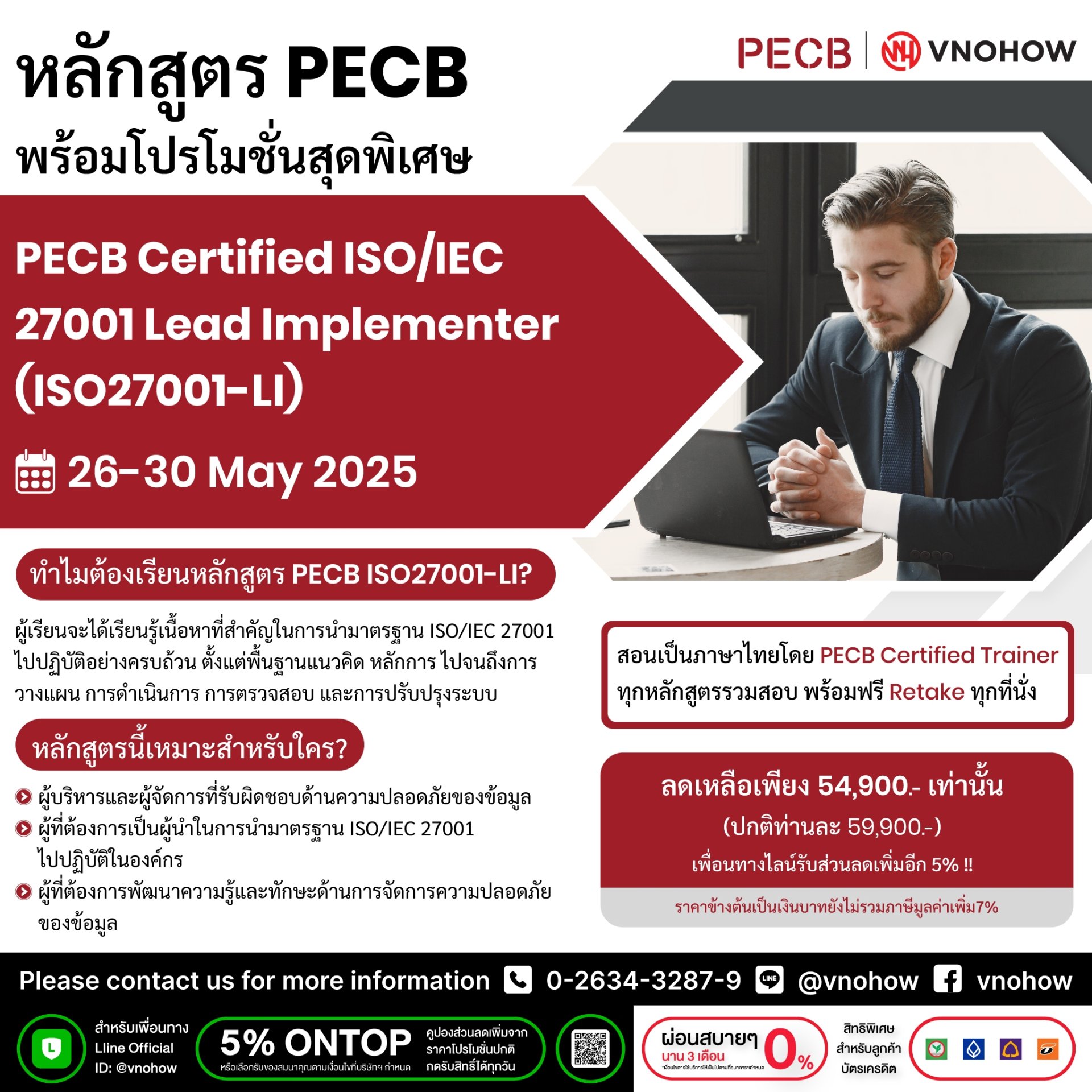 หลักสูตร PECB Certified ISO/IEC 27001-LI รวมสอบพร้อม Retake ในราคาสุดพิเศษ! พร้อมรับคูปองส่วนลดเพิ่มทางไลน์อีก 5%!! พลาดไม่ได้จริงๆ
