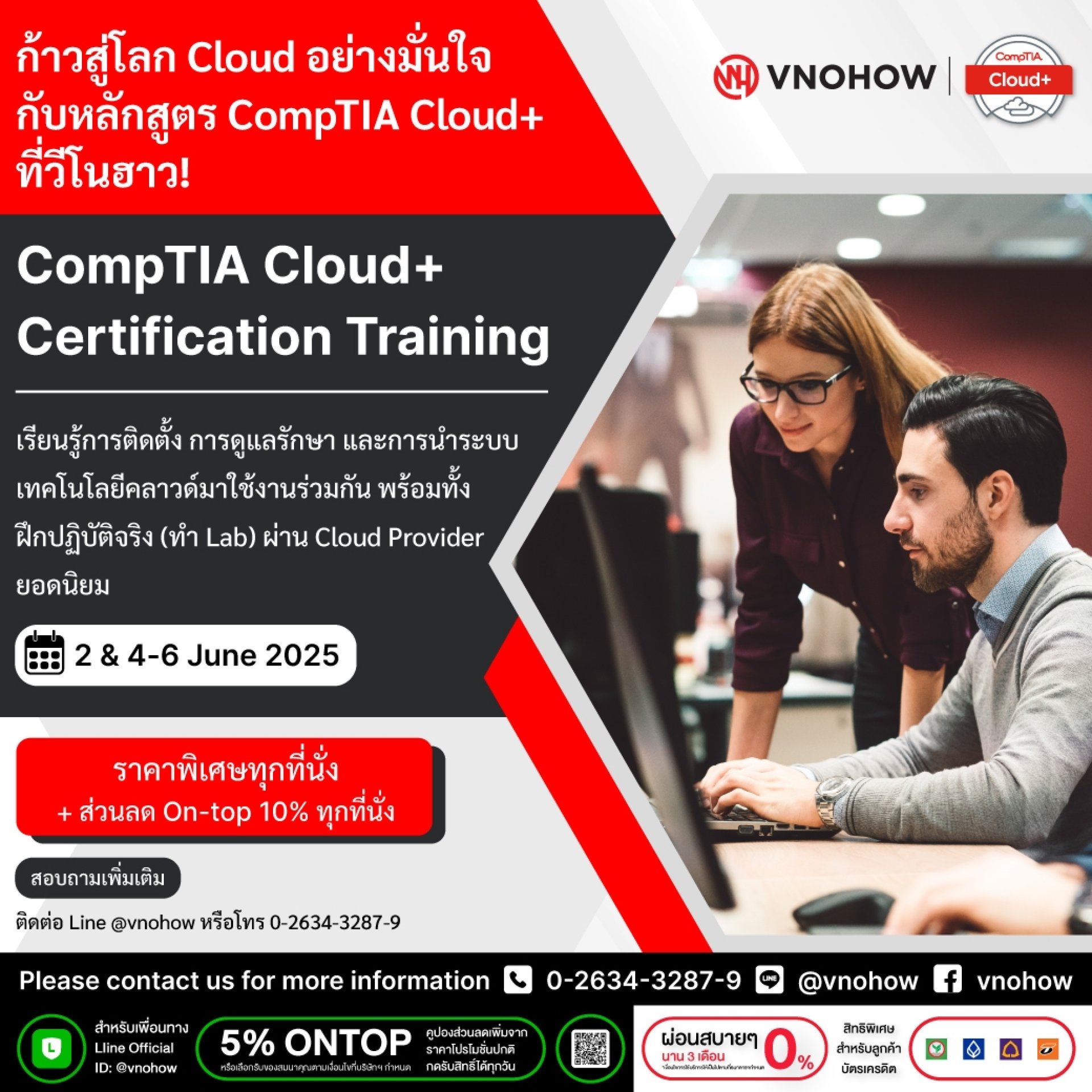 อัพสกิลสู่โลกของ Cloud อย่างมืออาชีพ ด้วยหลักสูตร CompTIA Cloud+ พร้อมรับราคาพิเศษและส่วนลด On-top 10% ทุกที่นั่ง!