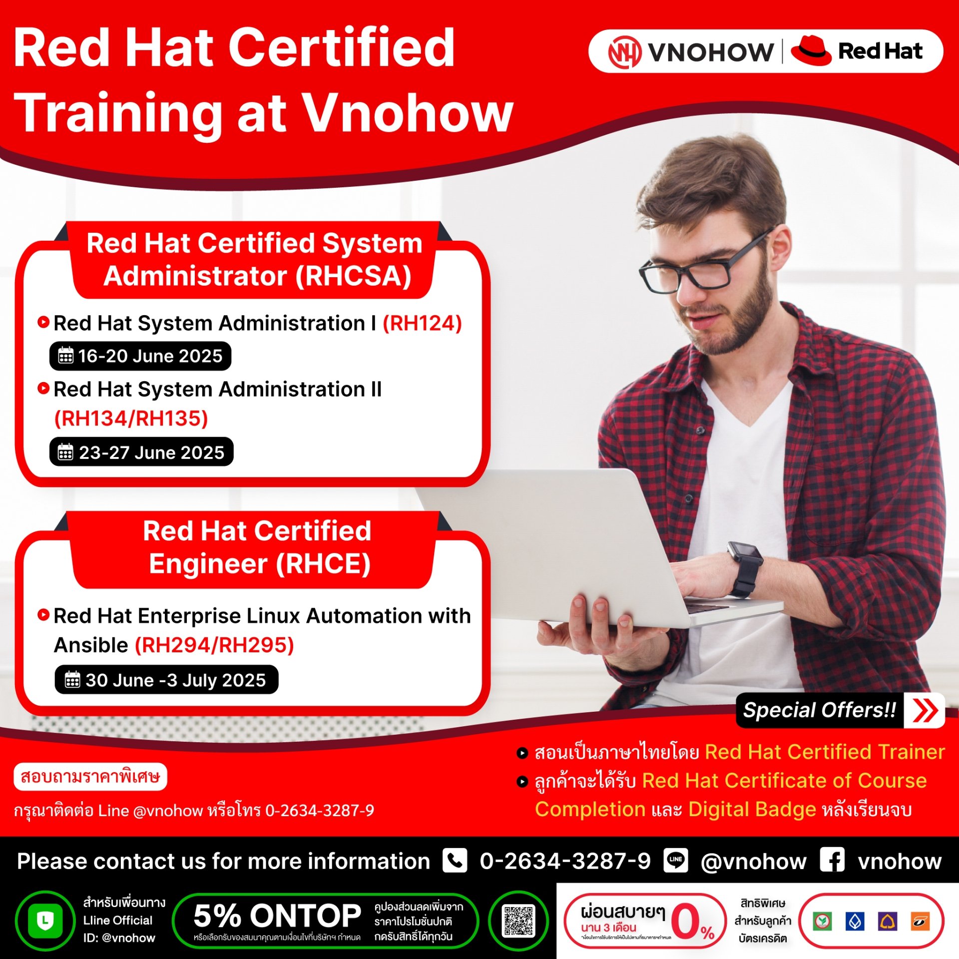 อย่าพลาดโอกาสพิเศษ! ยกระดับทักษะ Linux ของคุณไปอีกขั้นกับหลักสูตร Red Hat Certified Training โดย Vnohow