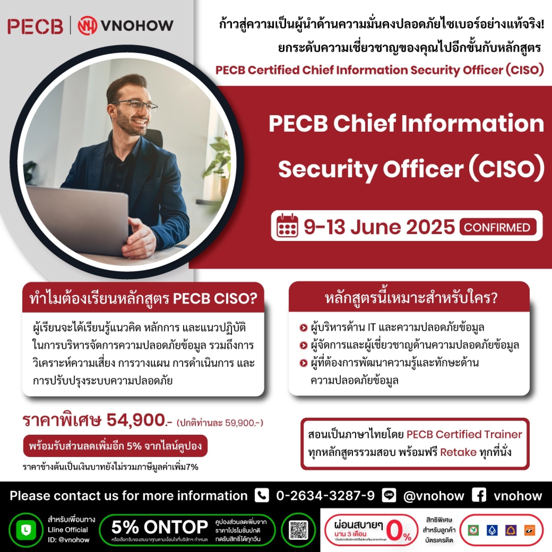ก้าวสู่การเป็นผู้นำด้านความปลอดภัยทางไซเบอร์ด้วยหลักสูตร CISO ราคาพิเศษ รวมสอบพร้อมฟรี Retake Exam!! รับส่วนลดเพิ่มได้อีก 5%จากไลน์คูปอง!!