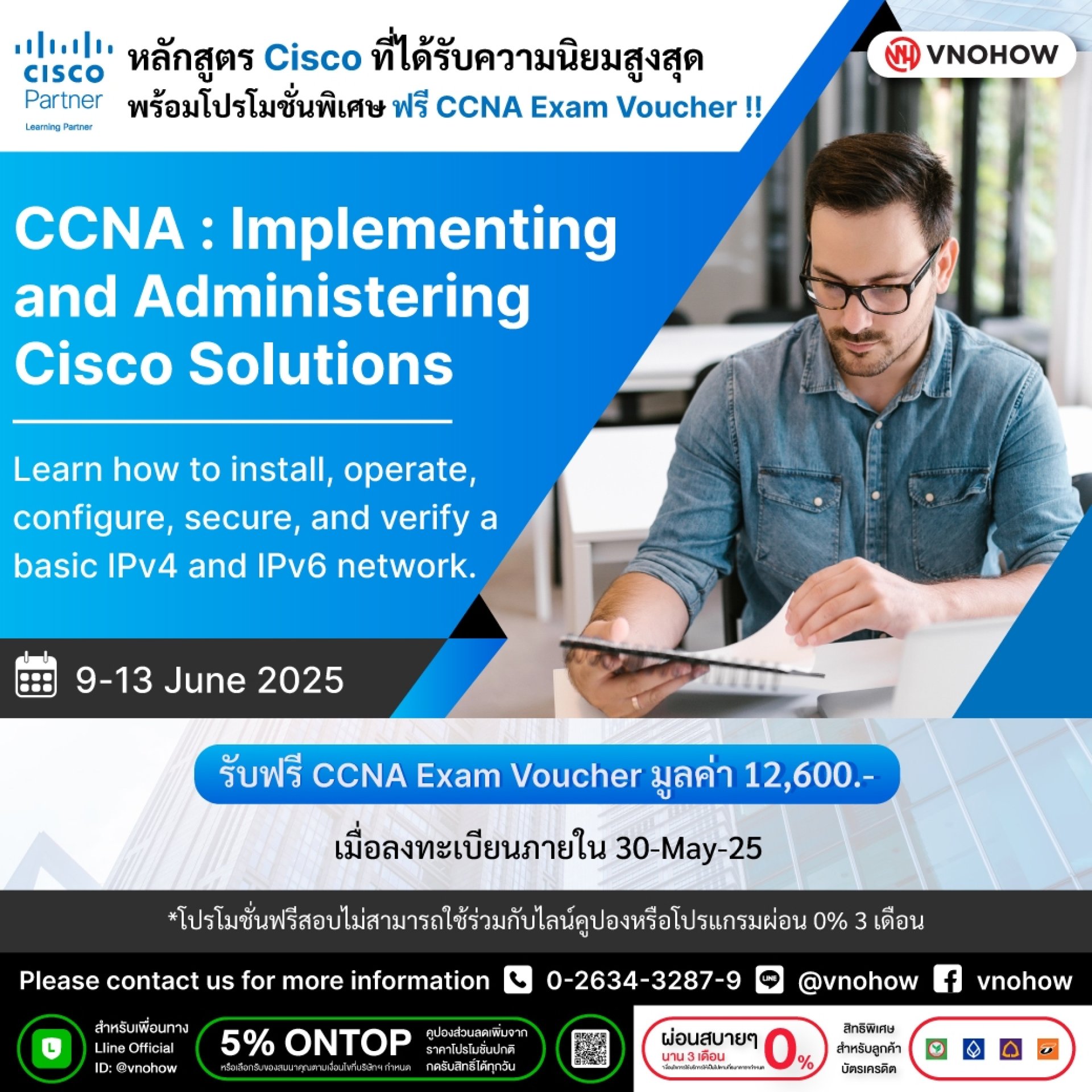 อย่ารอช้า!! CCNA หลักสูตรยอดนิยมจาก Cisco มาพร้อมโปรโมชั่นพิเศษที่คุณไม่ควรพลาด!! หมดเขตลงทะเบียน 30-May-25 นี้เท่านั้น!!