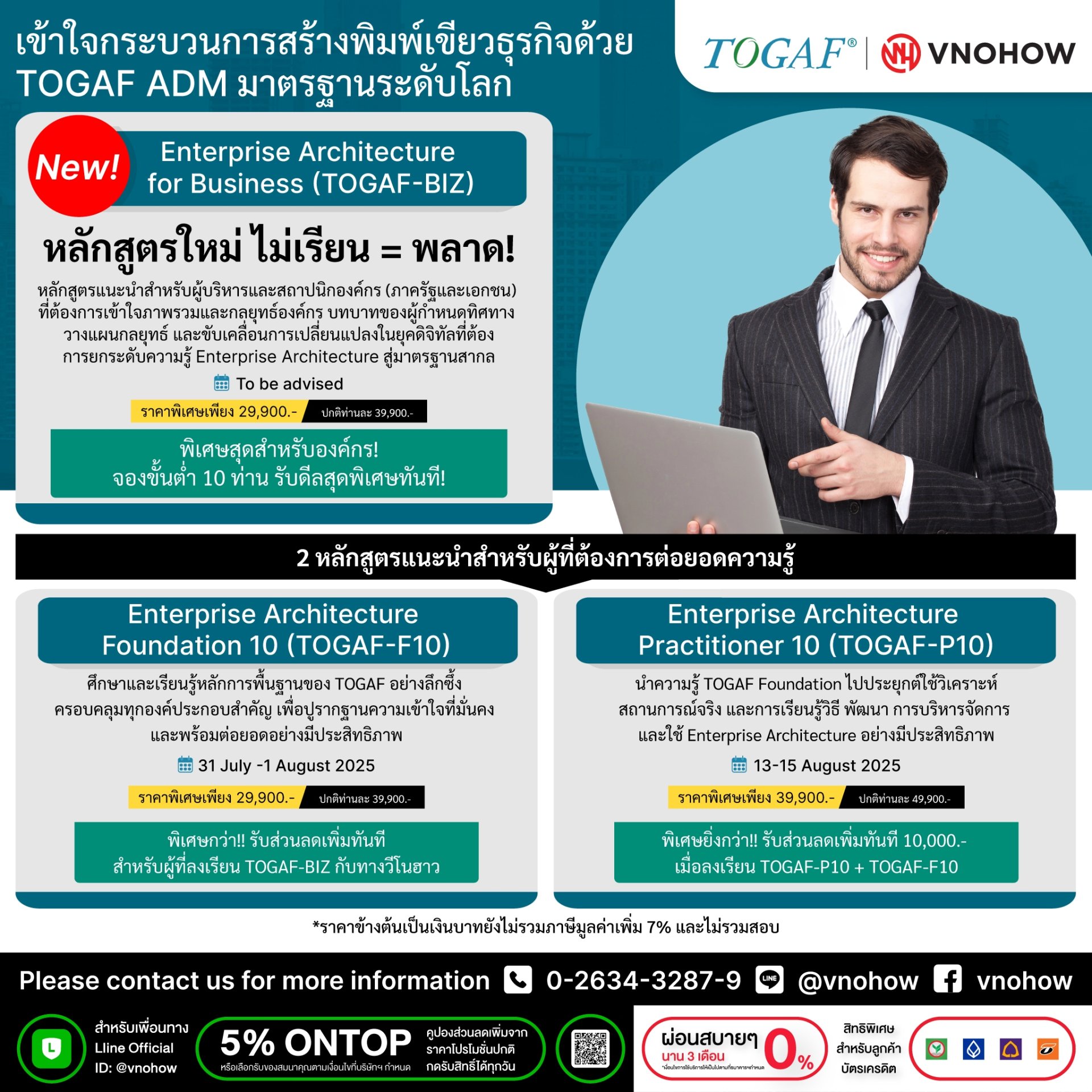 ทำความเข้าใจกับภาพรวมและกลยุทธ์องค์กร พร้อมยกระดับความรู้ Enterprise Architecture สู่มาตรฐานสากล กับหลักสูตร TOGAF-BIZ ที่วีโนฮาว