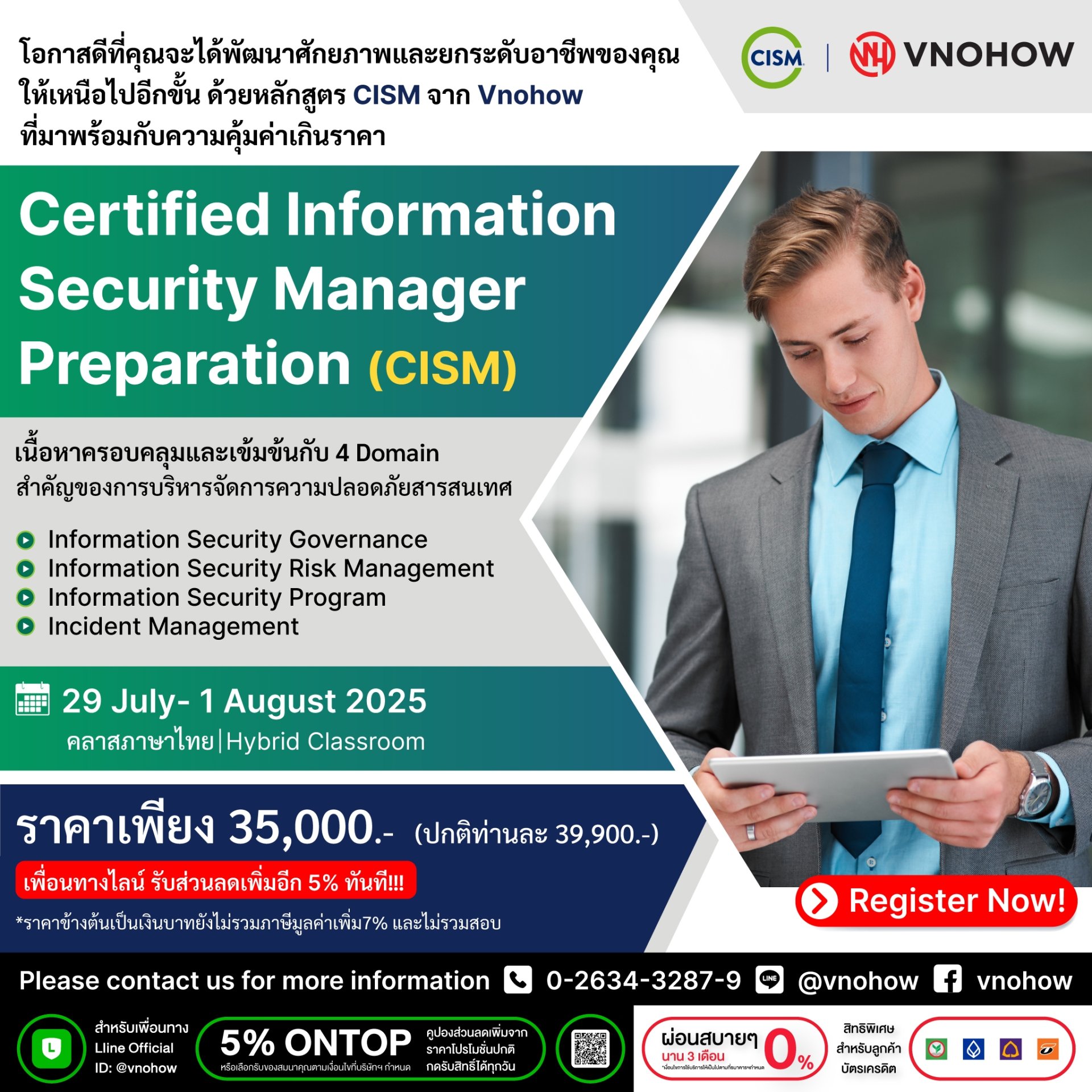 ก้าวสู่ผู้บริหารความปลอดภัยไซเบอร์มืออาชีพกับหลักสูตร CISM ที่ Vnohow!