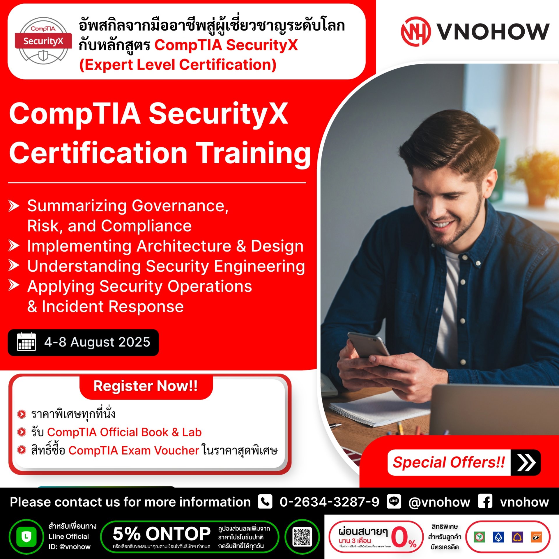 ปลดล็อกทักษะด้านความปลอดภัยทางไซเบอร์ระดับผู้เชี่ยวชาญด้วยหลักสูตร CompTIA SecurityX ในราคาสุดคุ้ม! พร้อมรับสิทธิ์ซื้อสอบในราคาพิเศษทุกที่นั่ง!