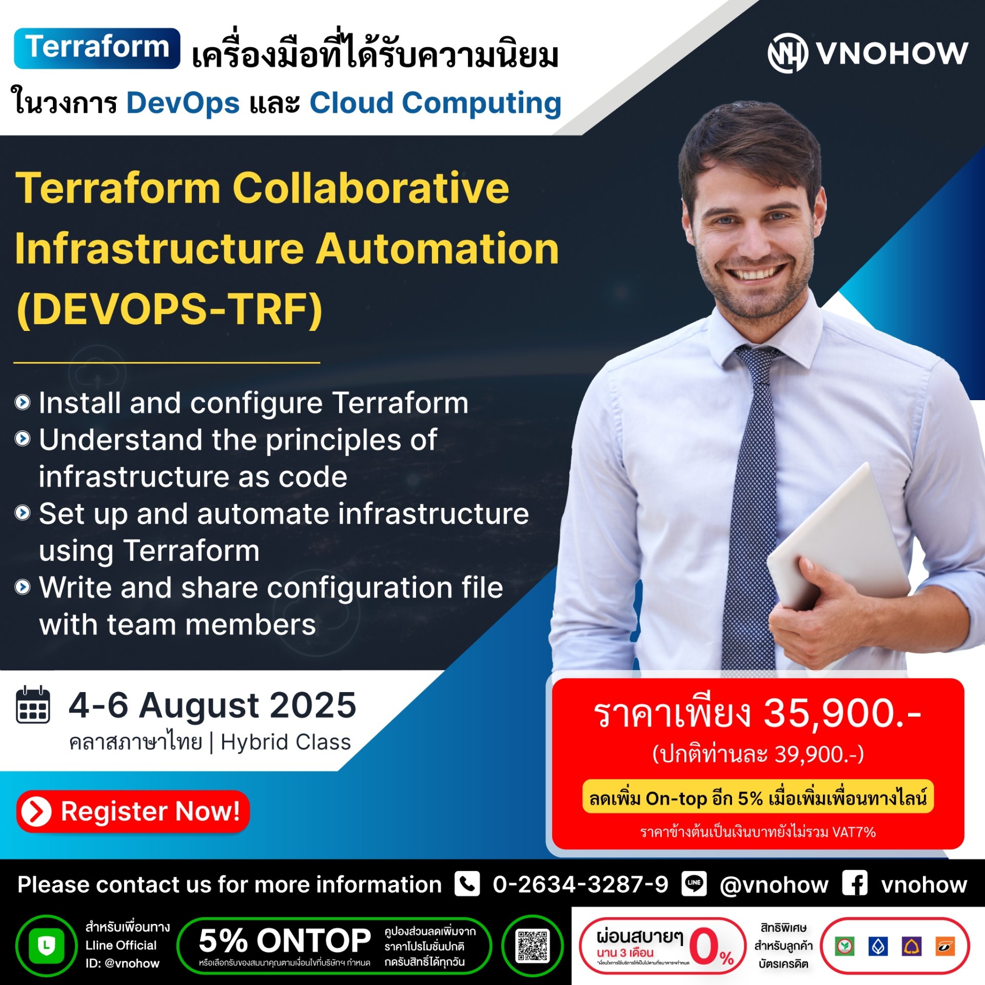 Terraform Collaborative Infrastructure Automation เรียนรู้การติดตั้งและจัดการ Terraform แบบมืออาชีพ ในราคาสุดพิเศษ! พร้อมส่วนลดเพิ่มอีก 5% จากไลน์คูปอง!
