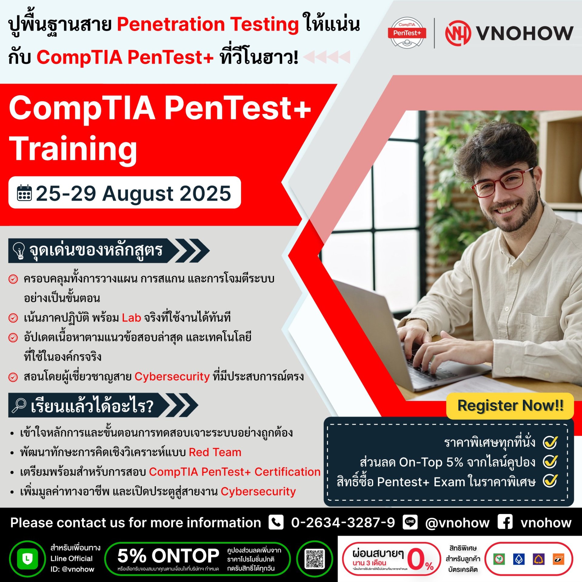 เรียนรู้กระบวนการทดสอบเจาะระบบครบทุกขั้นตอน ตั้งแต่ Planning, Reconnaissance, Exploitation ไปจนถึง Reporting กับ CompTIA Pentest+ ราคาพิเศษ!