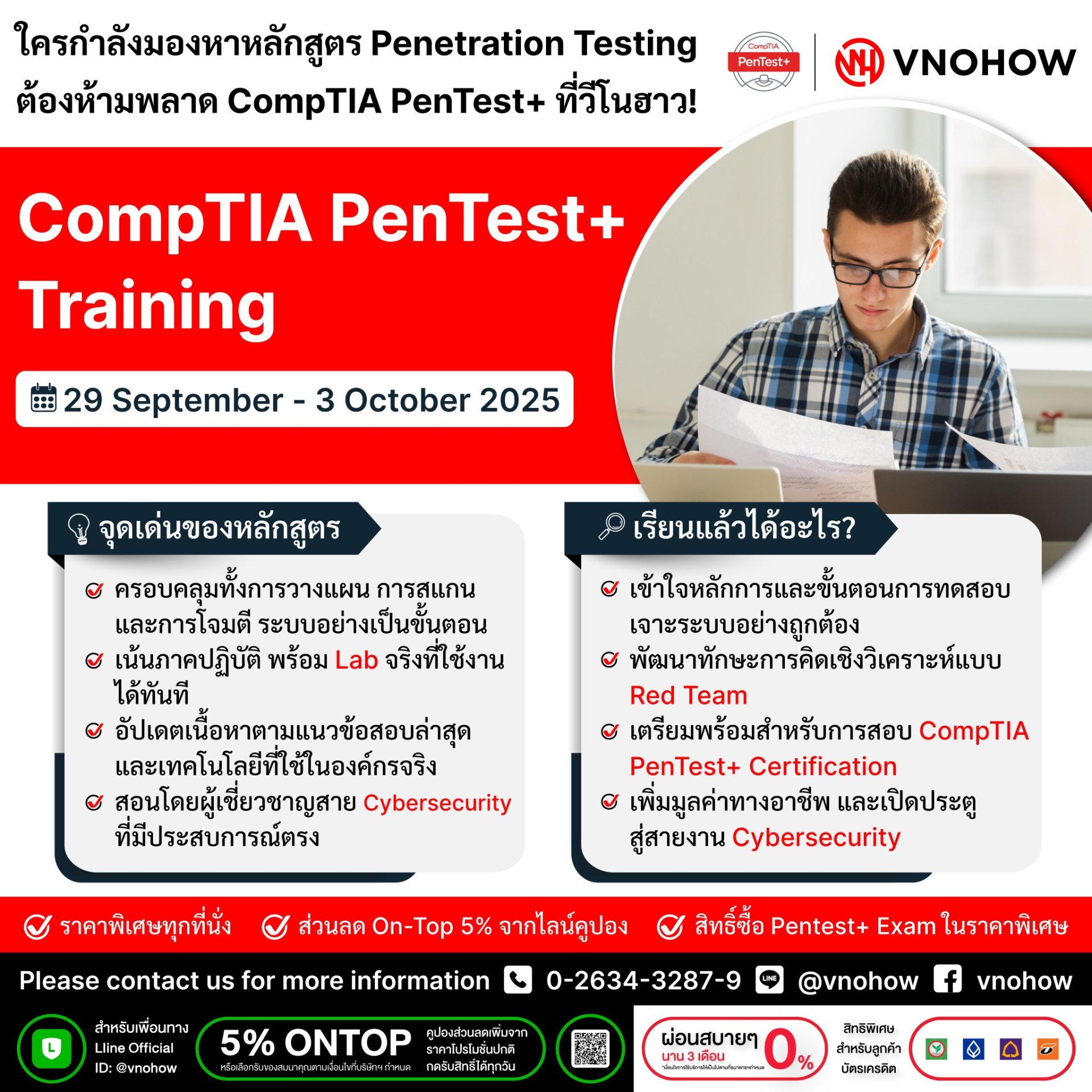 เรียนรู้ครบทั้งการวางแผน การสแกน และการโจมตีระบบอย่างเป็นขั้นตอน ในราคาพิเศษ พร้อมรับสิทธิ์ซื้อสอบในราคาสุดคุ้มทุกที่นั่ง!