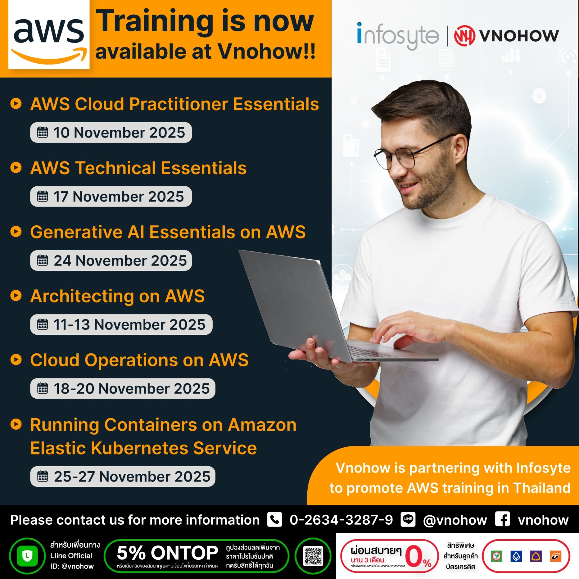 อยากเริ่มต้นเส้นทางสาย Cloud หรืออัปเกรดความรู้ให้ทันสมัย ต้องห้ามพลาดหลักสูตร AWS ที่วีโนฮาว เนื้อหาจัดเต็มจากผู้เชี่ยวชาญ พร้อมพาคุณสู่การเป็น Cloud Engineer ที่ตลาดต้องการ!