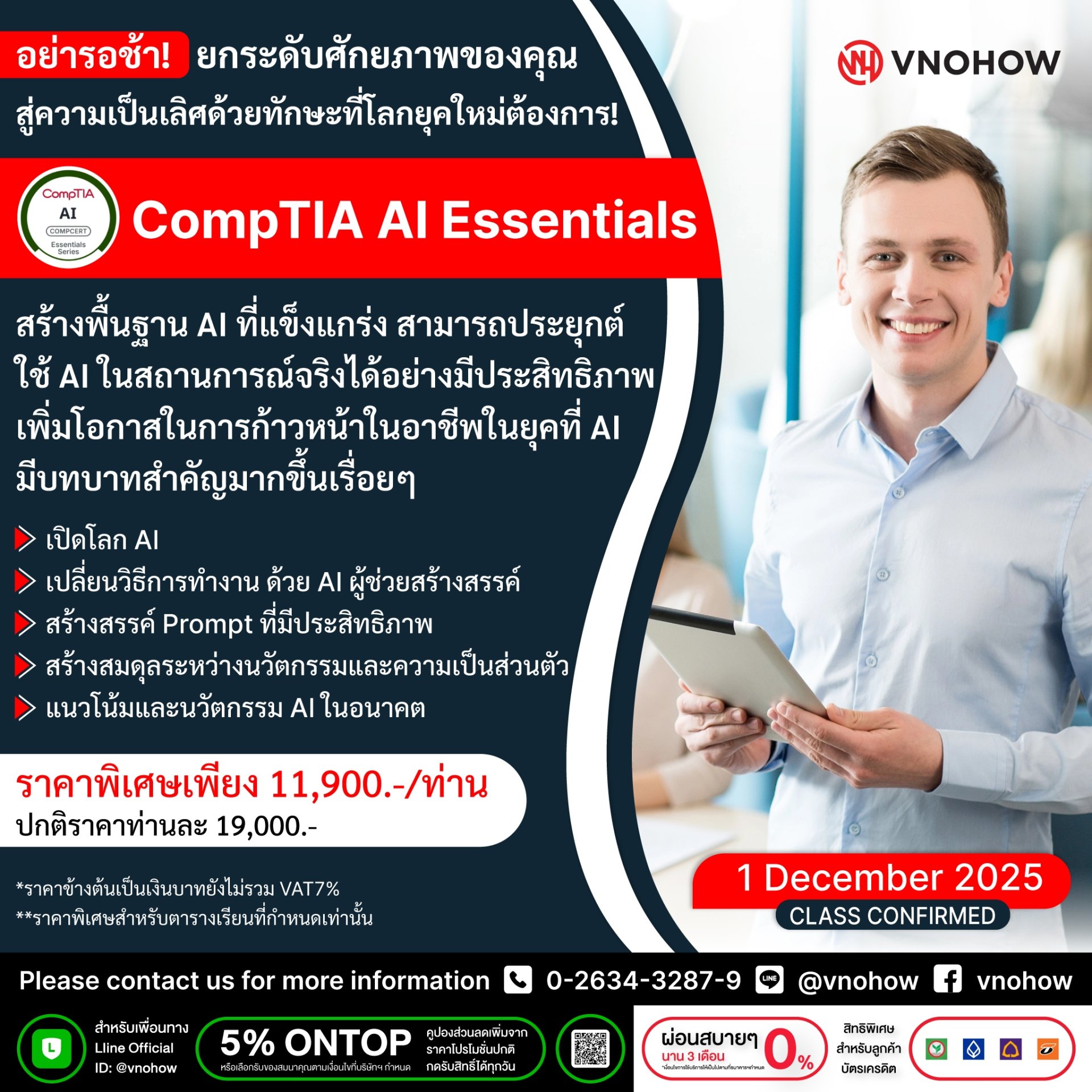 | For registrations or further inquiries, please feel free to contact us Phone: +662 634-3287-89, +662 634-3299 Email: vnohow@vnohow.com LINE: @vnohow Facebook: Vnohow |