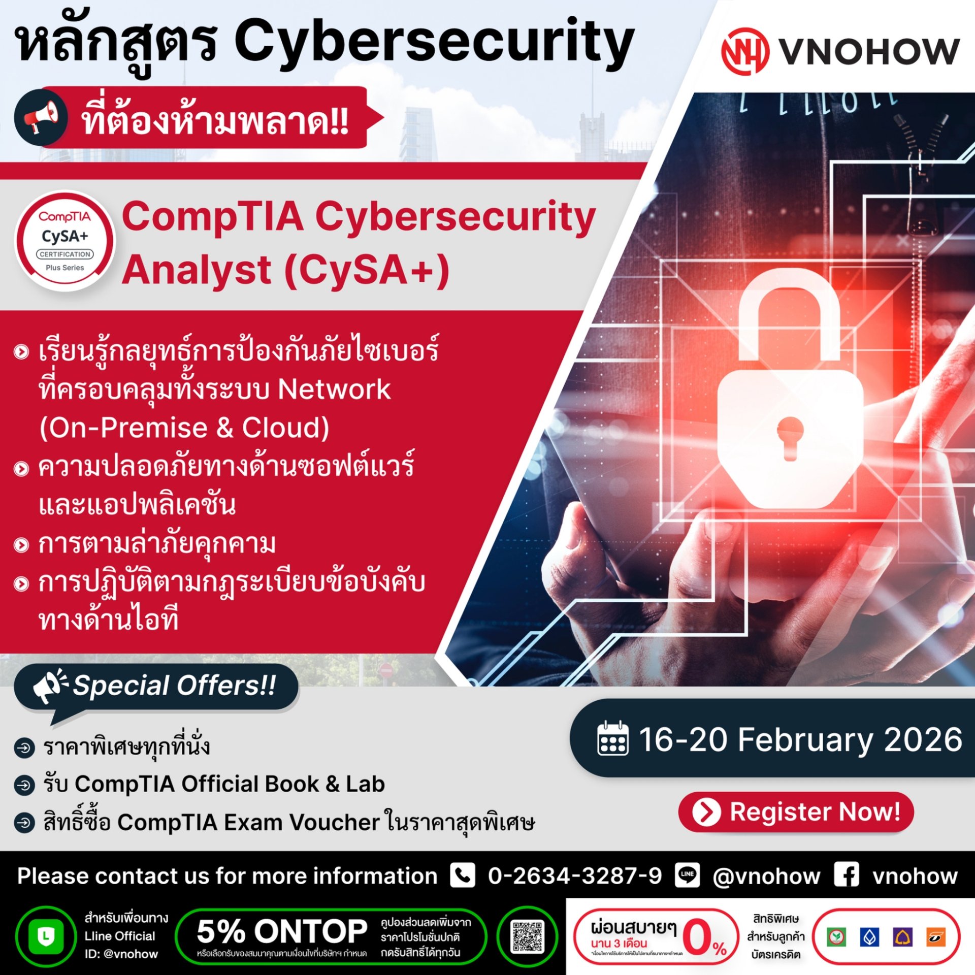 หลักสูตรที่ครอบคลุมทั้ง Network Security, Threat Management และ IT Governance! ช่วยให้คุณอัปสกิลด้าน Cybersecurity สู่ระดับมืออาชีพอย่างมั่นใจ!