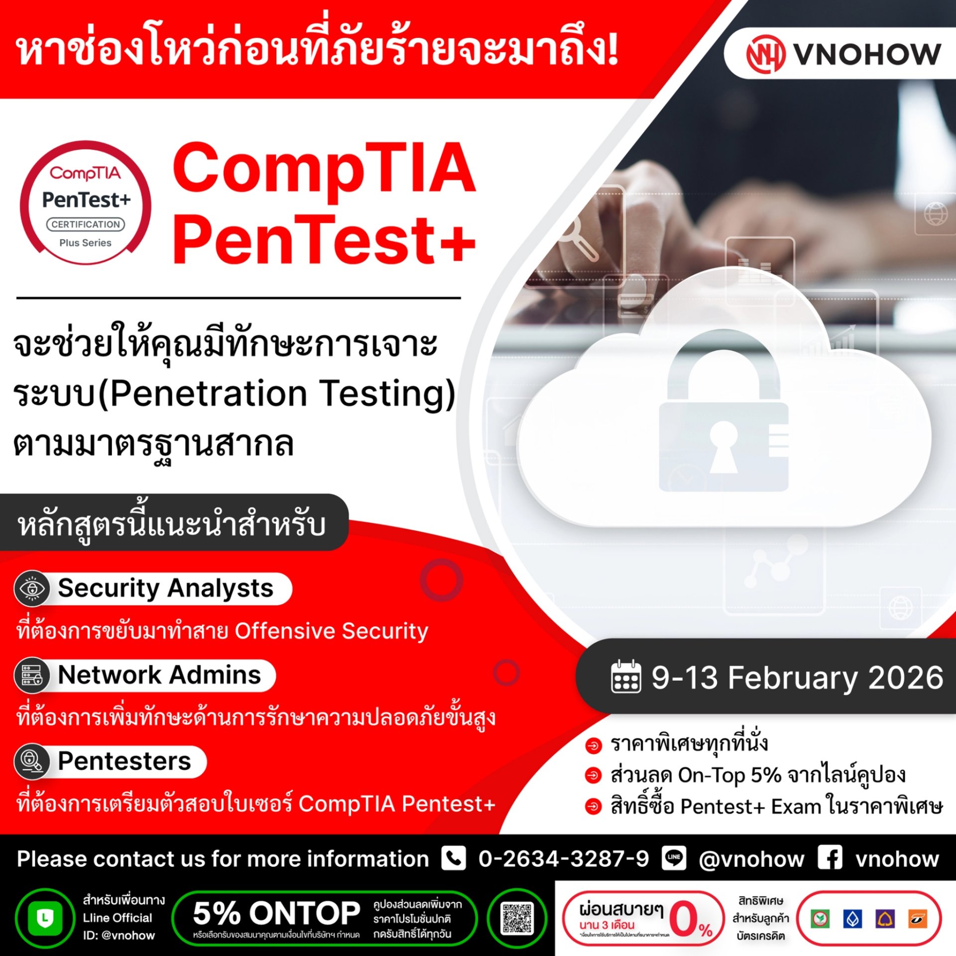 CompTIA PenTest+ ยกระดับความรู้ด้านการเจาะระบบให้กลายเป็นกลยุทธ์การป้องกัน กับหลักสูตรมาตรฐานสากล เสริมความแข็งแกร่งให้ระบบอย่างมีประสิทธิภาพ!