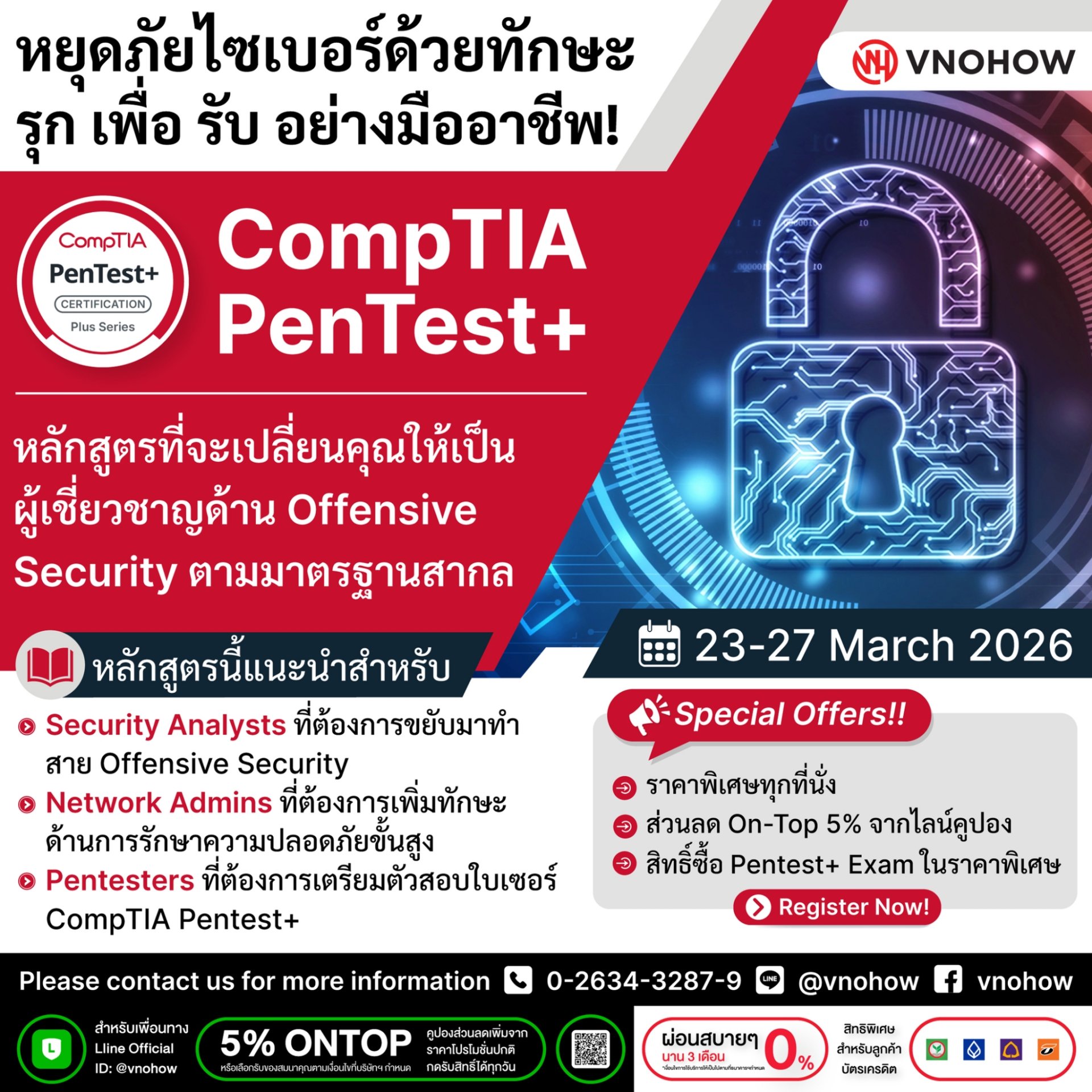 เรียนรู้การคิดแบบผู้โจมตี เพื่อเสริมเกราะองค์กรให้แข็งแกร่งกว่าเดิม ด้วยหลักสูตร CompTIA PenTest+ ราคาพิเศษ!