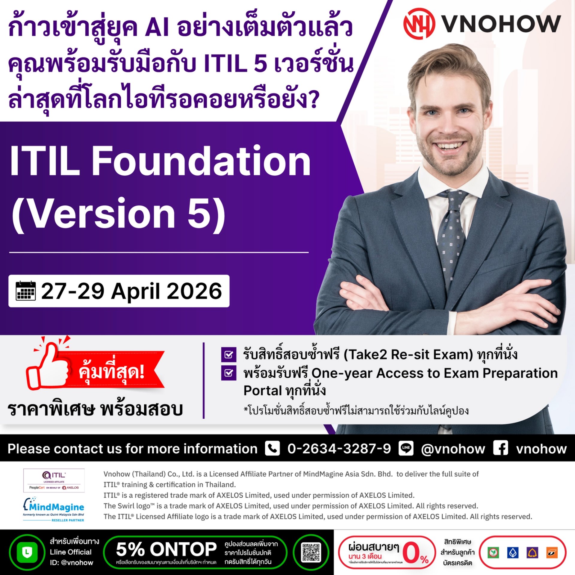 | ITIL-FTV5 | ITIL® 5 Foundation with Case Study (Include Exam) Thai | 3 | 27-29 Apr | 45,900 | Please call | Download |