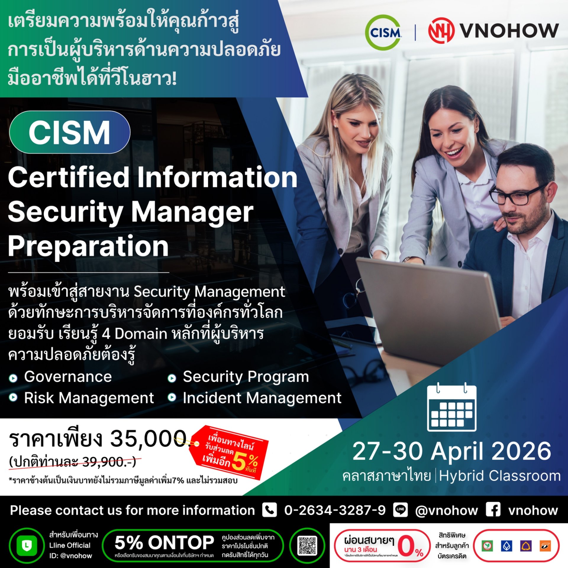 | CISM | Certified Information Security Manager Preparation | 4 | 27-30 Apr | 39,900 | 35,000 | Download |