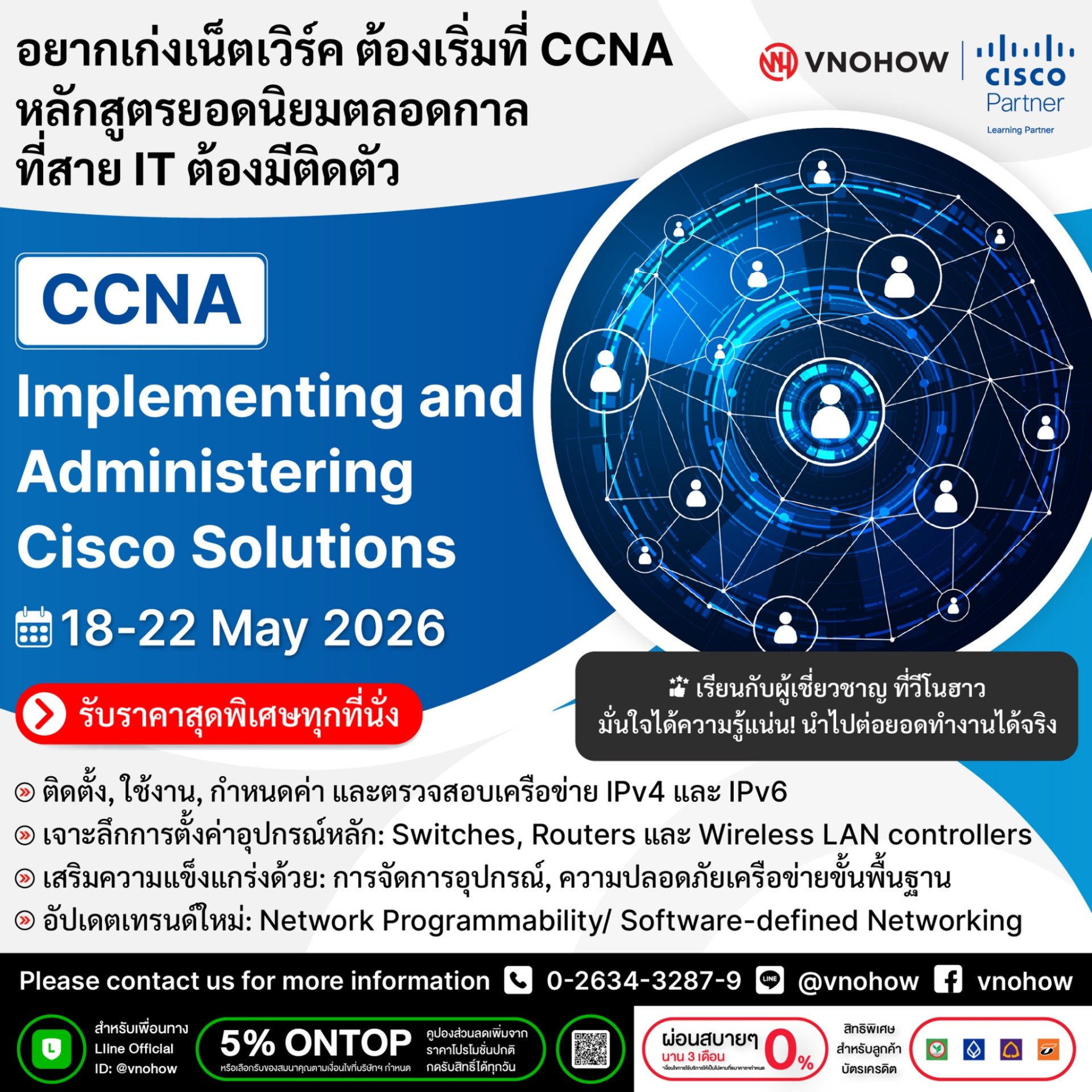หลักสูตรพื้นฐานสำคัญที่ครอบคลุมทั้งการติดตั้ง ตั้งค่า และบริหารจัดการเครือข่าย พร้อมอัปเดตเทรนด์ใหม่ให้พร้อมใช้งานจริงในองค์กร!