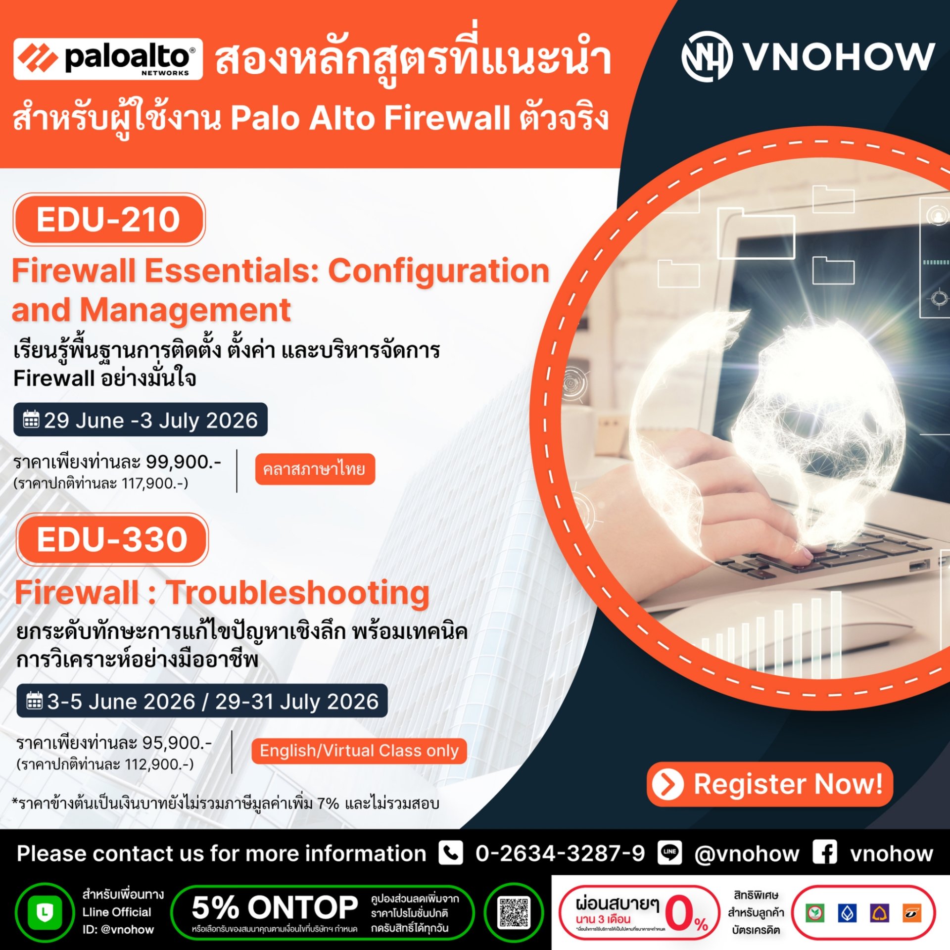 | For registrations or further inquiries, please feel free to contact us Phone: +662 634-3287-89, +662 634-3299 Email: vnohow@vnohow.com LINE: @vnohow Facebook: Vnohow |