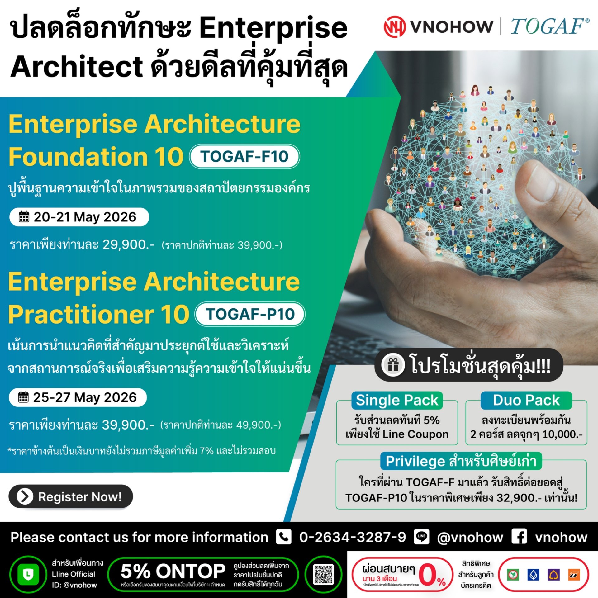| TOGAF-F10 | Enterprise Architecture Foundation 10 | 2 | 20-21 May | 39,900 | 29,900 | Download |