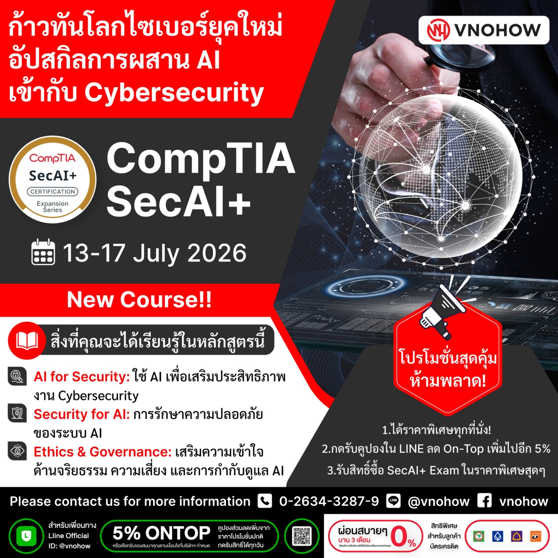ก้าวทันเทคโนโลยีด้วยหลักสูตร CompTIA SecAI+ ที่ผสาน AI เข้ากับงานด้าน Cybersecurity เพิ่มประสิทธิภาพความปลอดภัย และเข้าใจการปกป้องระบบ AI อย่างถูกต้อง!